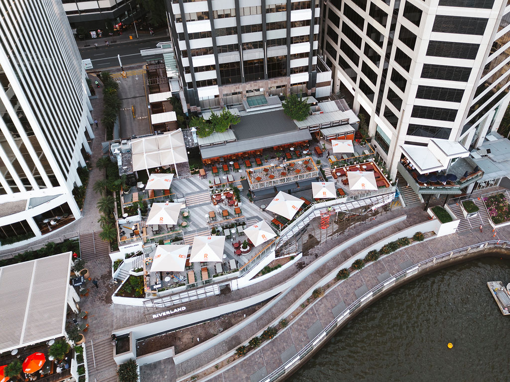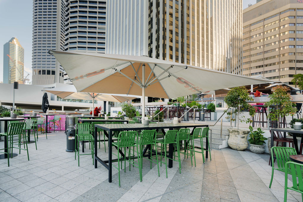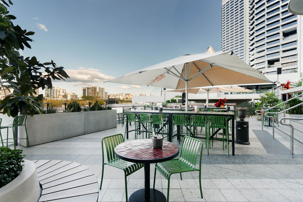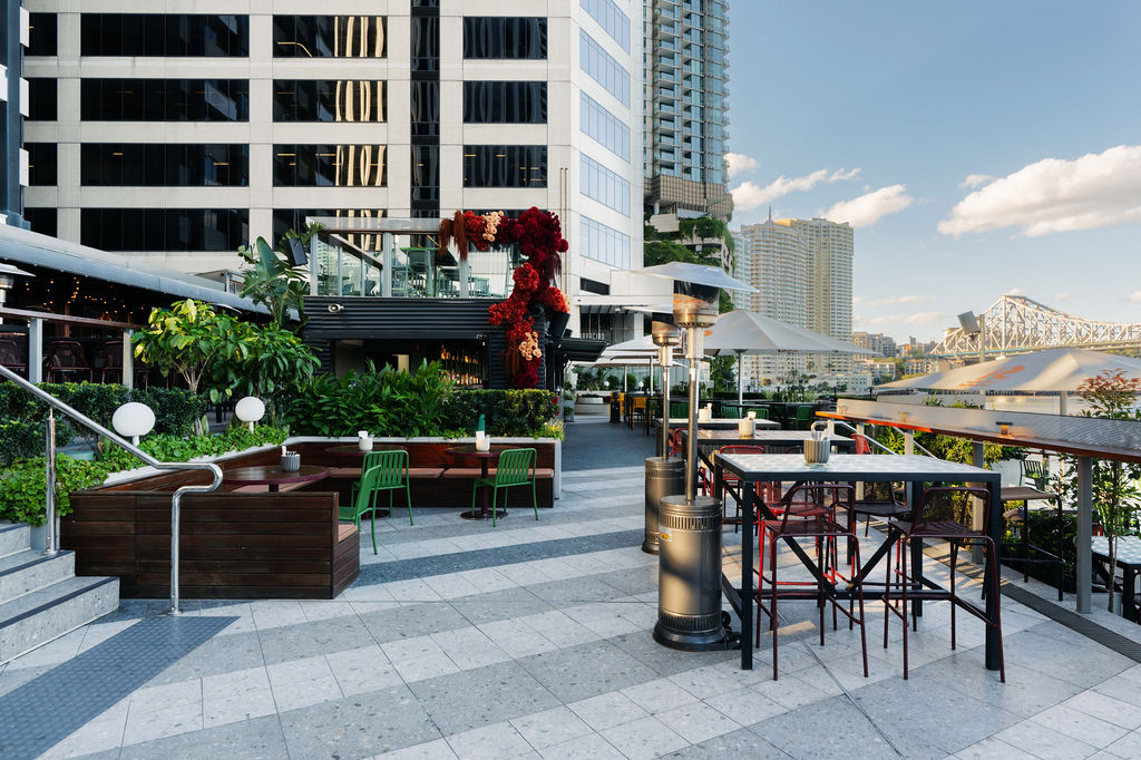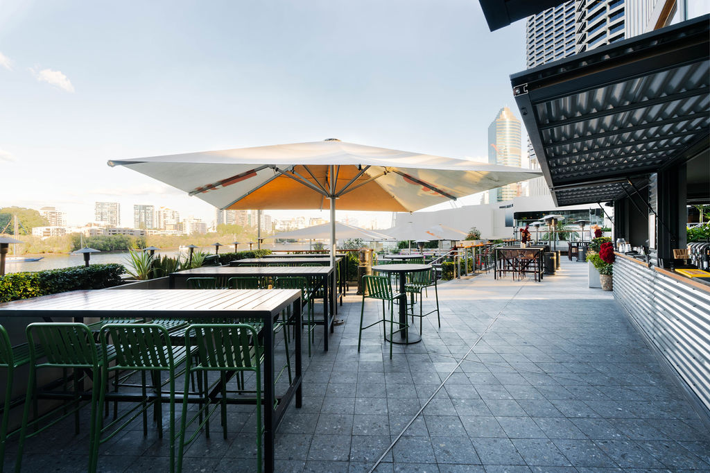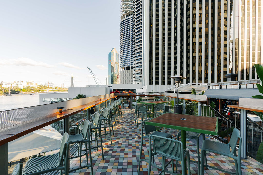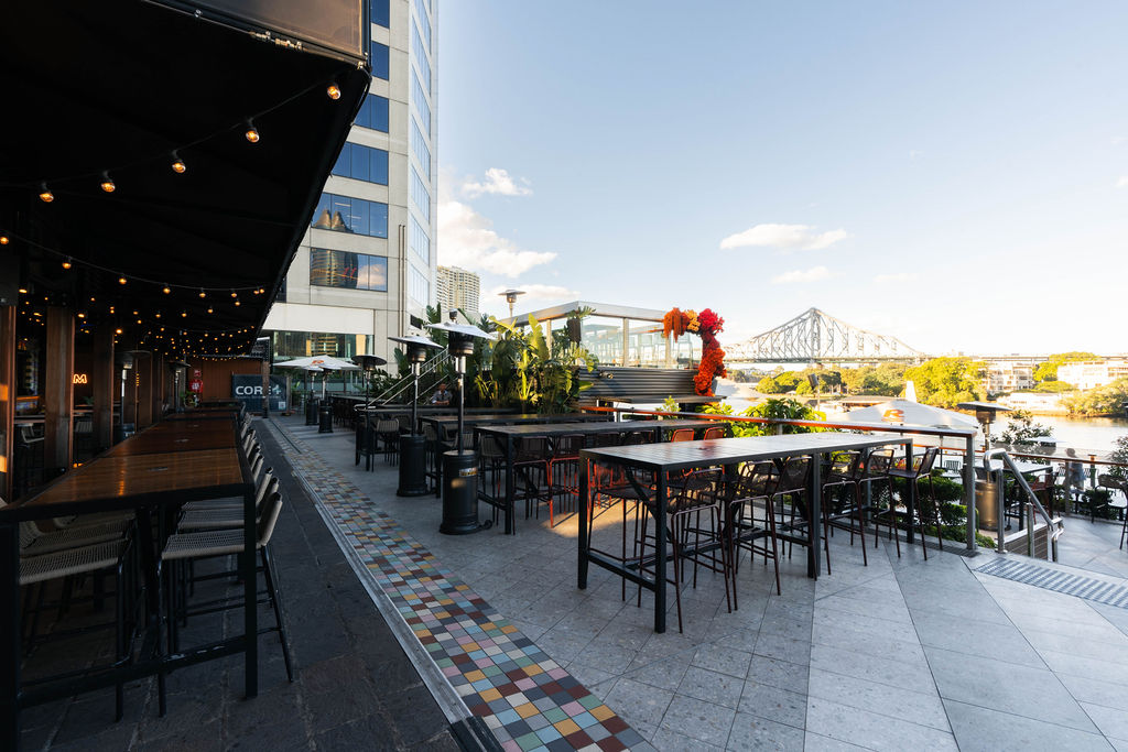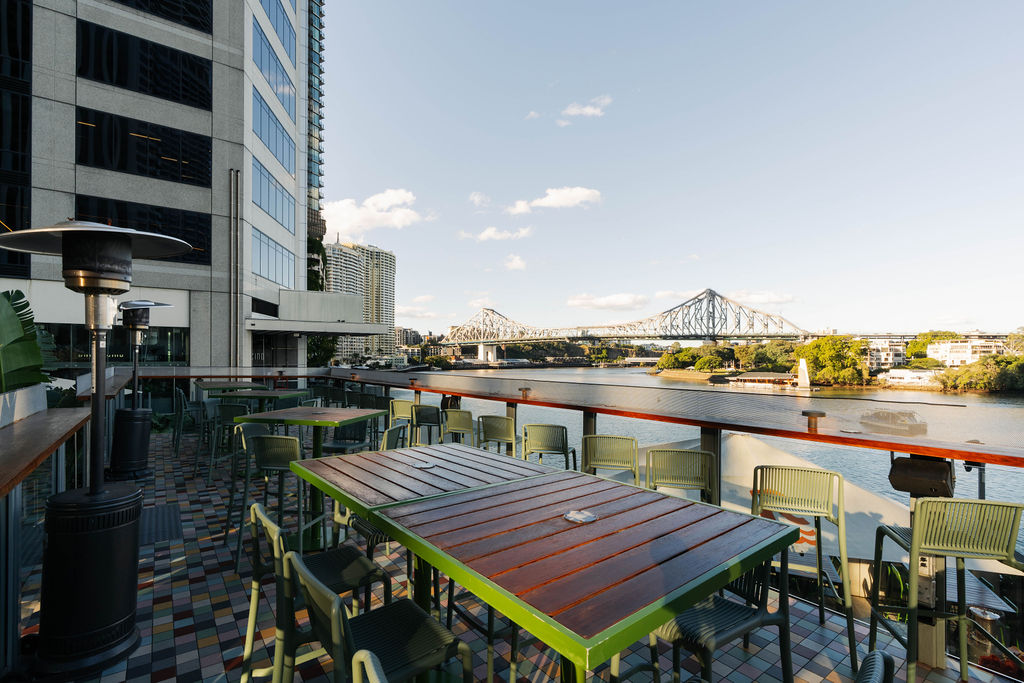 Semi-private space atop the Deck Bar, with uninterrupted Brisbane River and Story Bridge views. 60 Guests Cocktail Style
